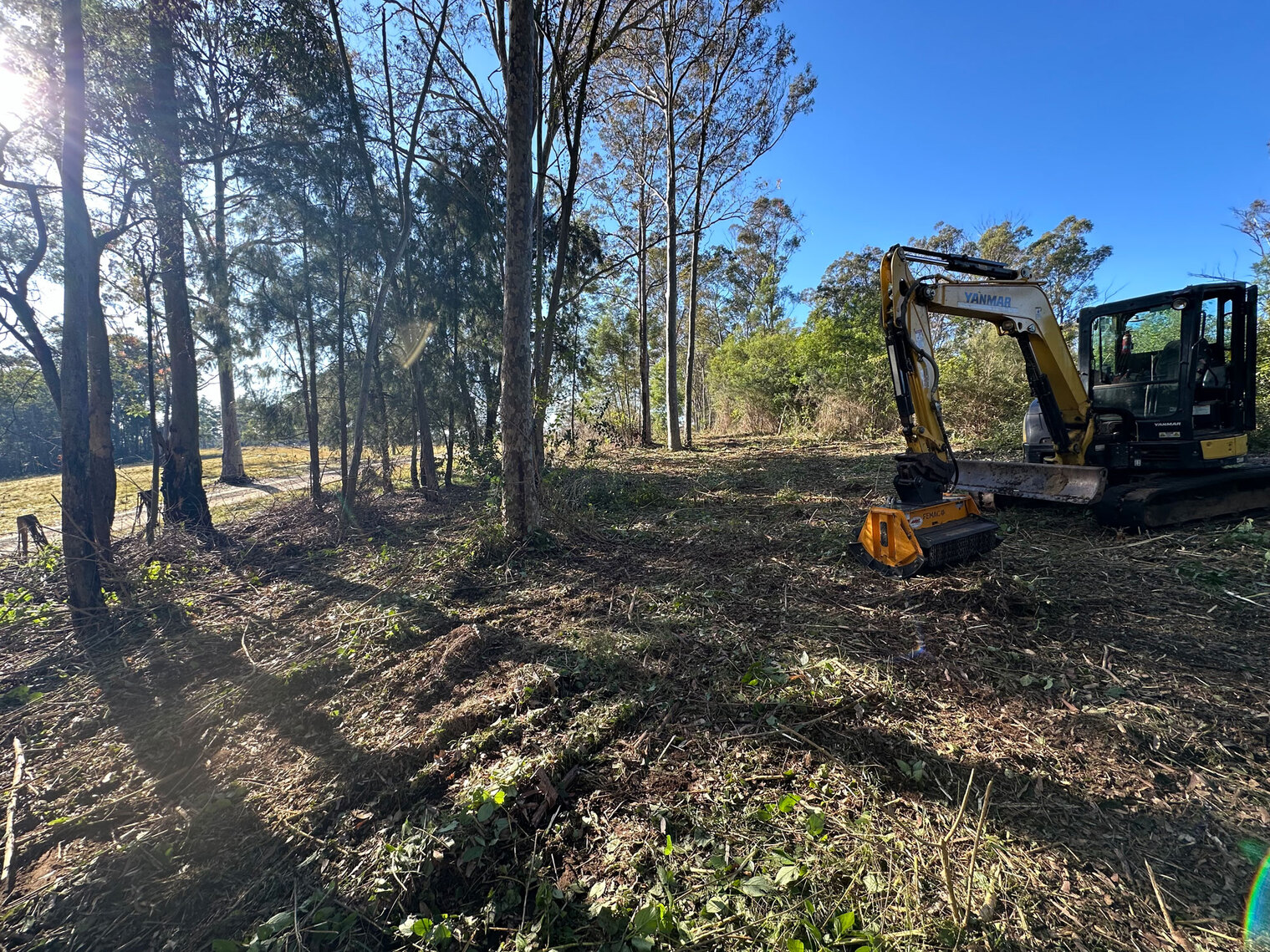 Landclearing refers to the removal of trees, bushes, and other vegetation from a piece of land in order to make it suitable for a specific use, such as agriculture or urban development. The process of landclearing can have significant environmental impacts, including loss of biodiversity, increased carbon dioxide in the atmosphere, and changes to local hydrological systems. In some cases, landclearing is regulated by laws and policies intended to minimize its negative effects.when we do this we use Excavator mowing attachments and log grabs are specialized tools that can be attached to an excavator to perform specific tasks related to tree maintenance and land management.An excavator mowing attachment, also known as a brush cutter or mulcher head, is a rotary cutting device that is mounted on the end of an excavator arm. It is used to clear land of unwanted vegetation, such as brush, small trees and weeds.